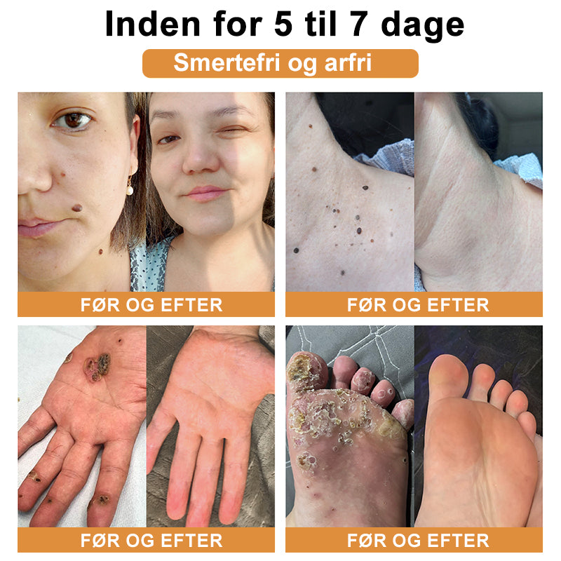 Fjerner fuldstændigt alle vorter og hudtags på kun 1-2 uger.