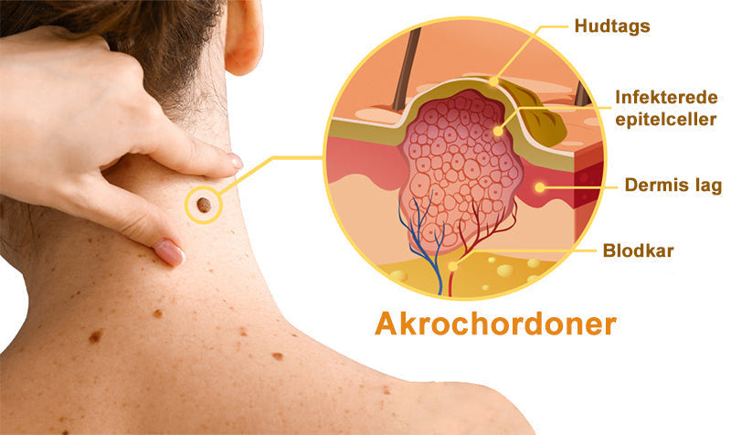 Hudtags, også kaldet acrochordoner, er små, bløde, godartede vækster, der stikker ud fra huden. De optræder typisk som små, hudfarvede eller lidt mørkere hudpletter, der ofte hænger fra huden på en tynd stilk eller peduncle. Hudtags er almindelige, og faktorer som friktion, hormonændringer, arvelighed, overvægt og insulinresistens kan bidrage til deres dannelse.