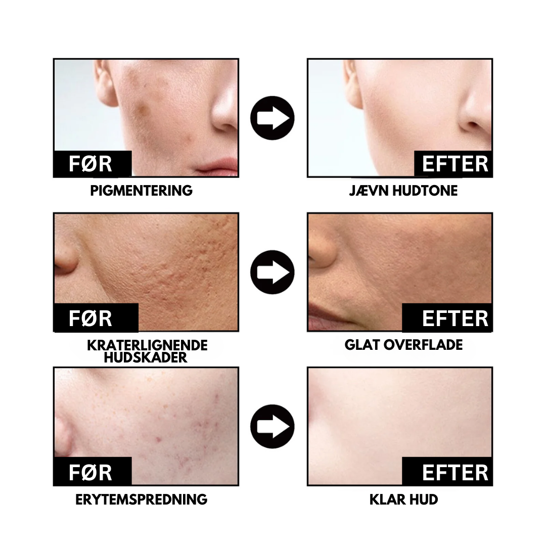 "DermaGlow™ Skin Equalizing Serum har revolutioneret min hudplejerutine. Denne kraftfulde formel udnytter niacinamidets kraft til effektivt at sprede melaninklynger, reducere postinflammatoriske ar og genopbygge hudvæv. Det mindsker ikke kun genstridige ar og øger fordybningernes dybde ved at fremme vævsregenerering og eksfoliering, men styrker også hudens fugtbarriere. Resultatet er synligt glattere, mere ensartet hud, der føles hydreret og revitaliseret. Dette er mit favoritprodukt til behandling af ar og forbedring af hudens generelle sundhed – det er virkelig en game-changer."