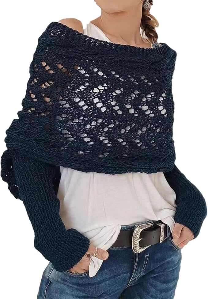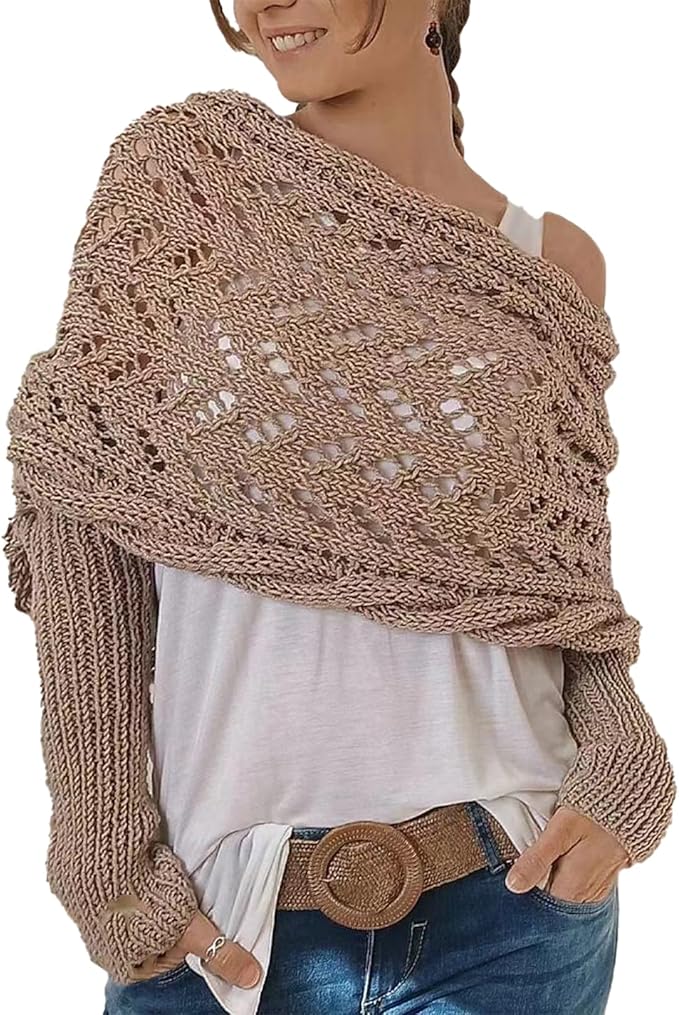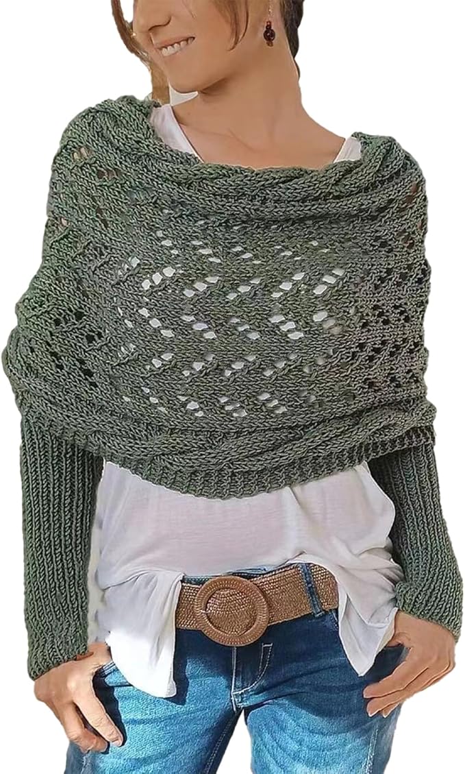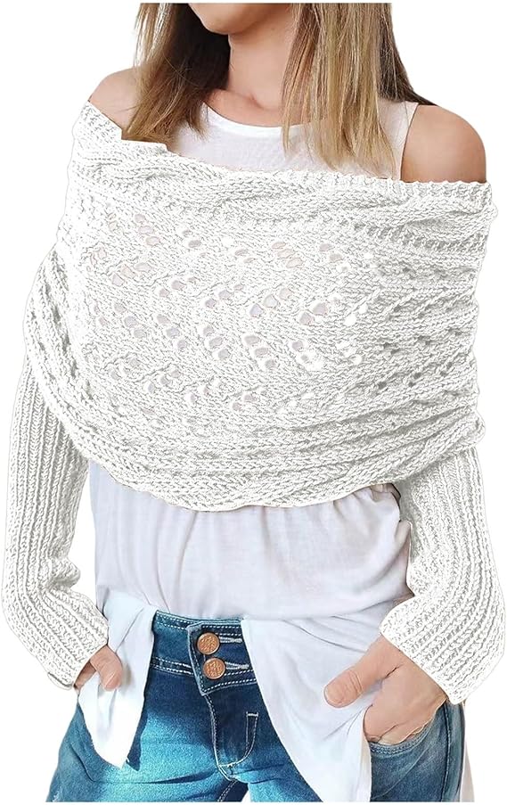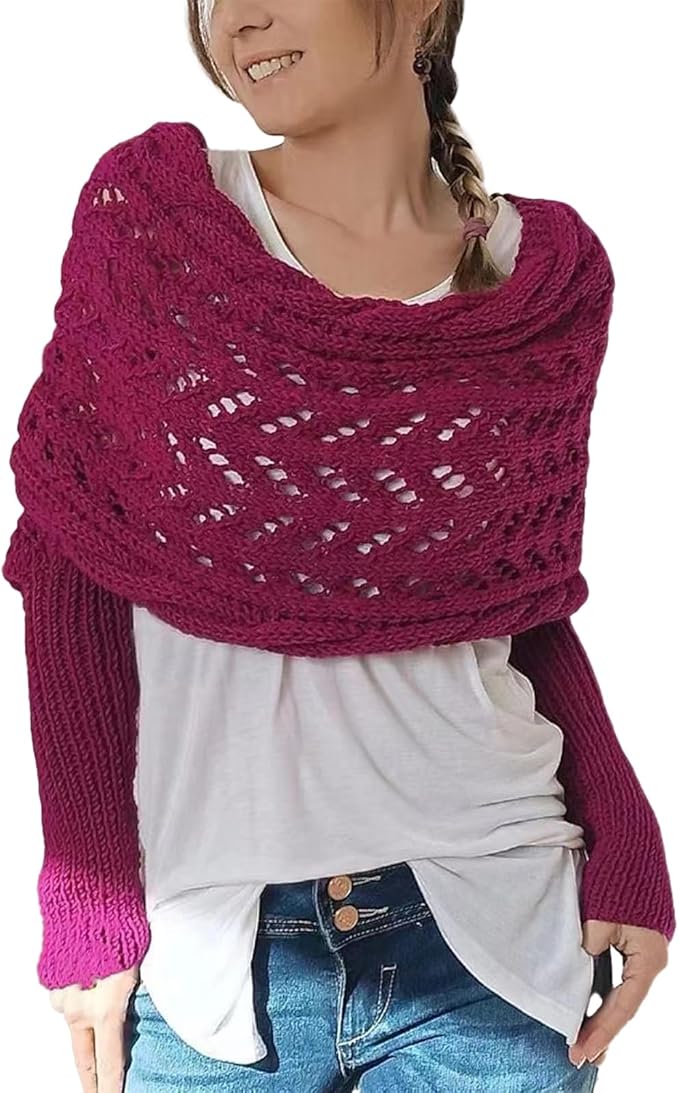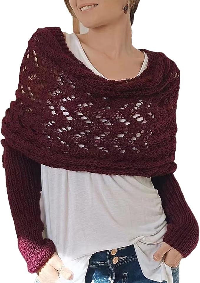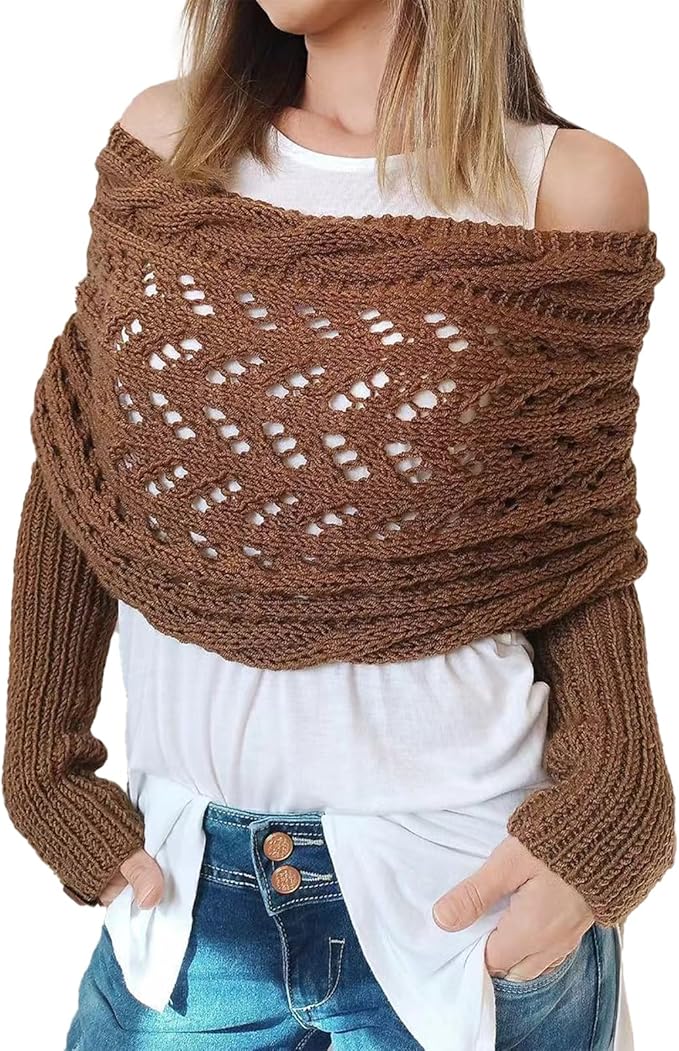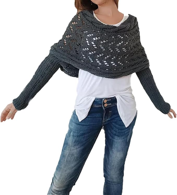 Tørklædet til kvinder med ærmer har indviklede kabelmønstre, der giver et strejf af raffinement og charme til ethvert outfit.