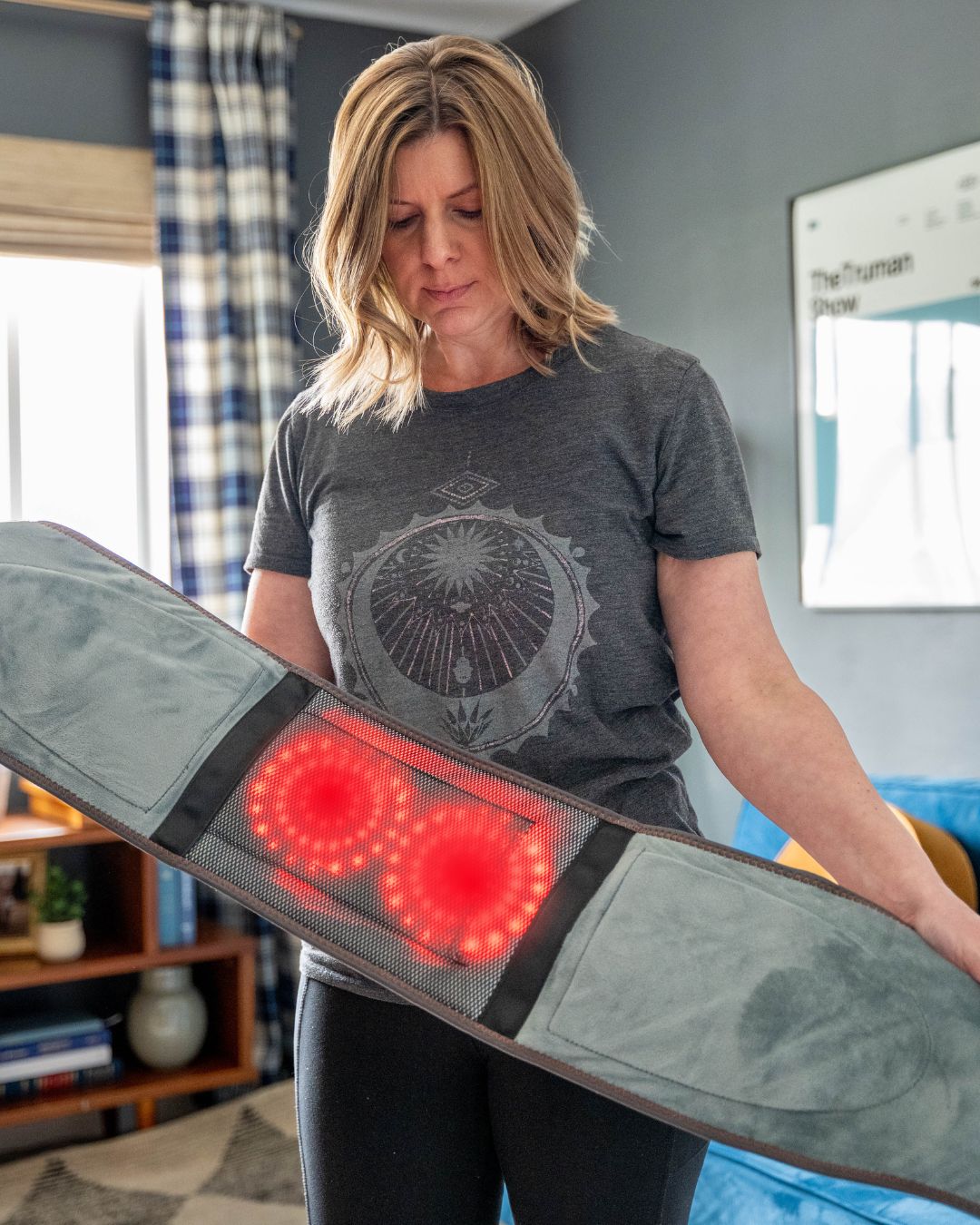 LysLindring Bæltet™ kombinerer rødlysterapi, massage og varme – alle klinisk bevist til at lindre rygsmerter, forbedre mobilitet og fremskynde heling.