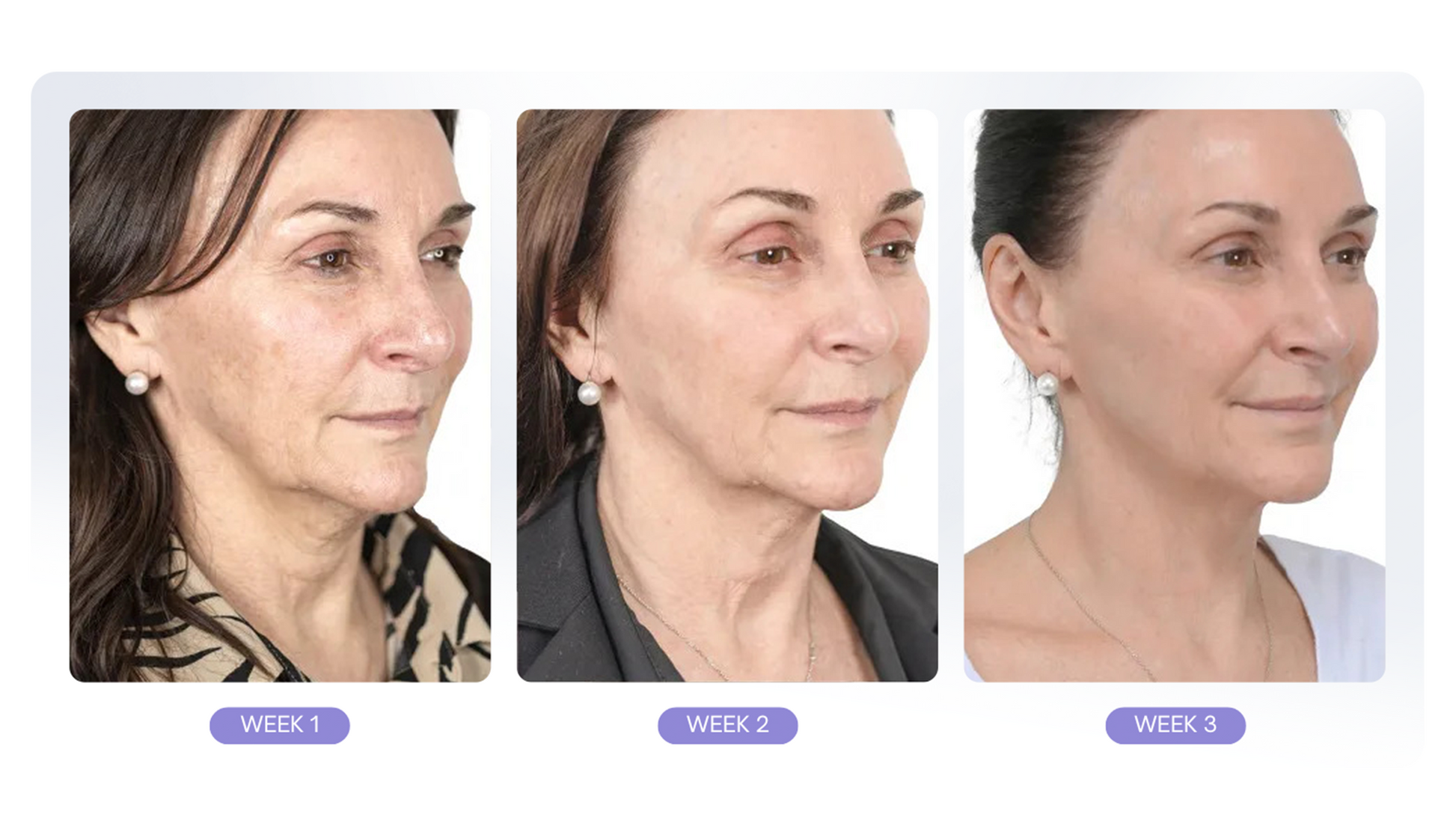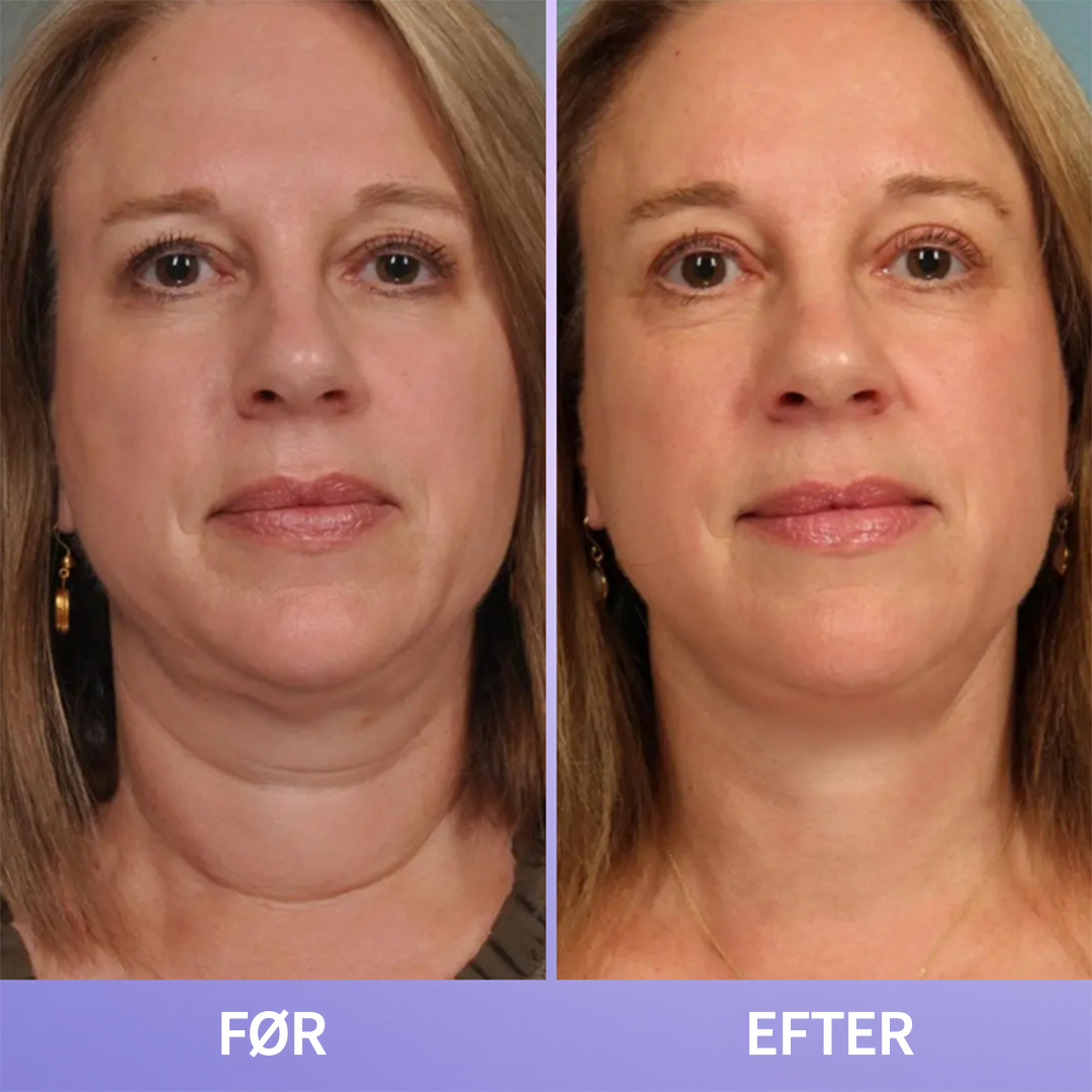 "Misfarvningerne på min hals begynder at udjævne sig, og min hud ser generelt sundere ud. De fine linjer er blødere, og min hals føles fastere end før."