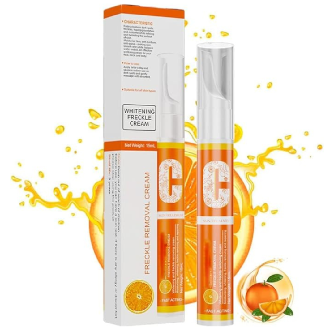 Sig farvel til fregner, mørke pletter og ujævn hudtone med vores avancerede formel med C-vitamin, niacinamid og hyaluronsyre – for at lysne, fugte og forynge din hud.