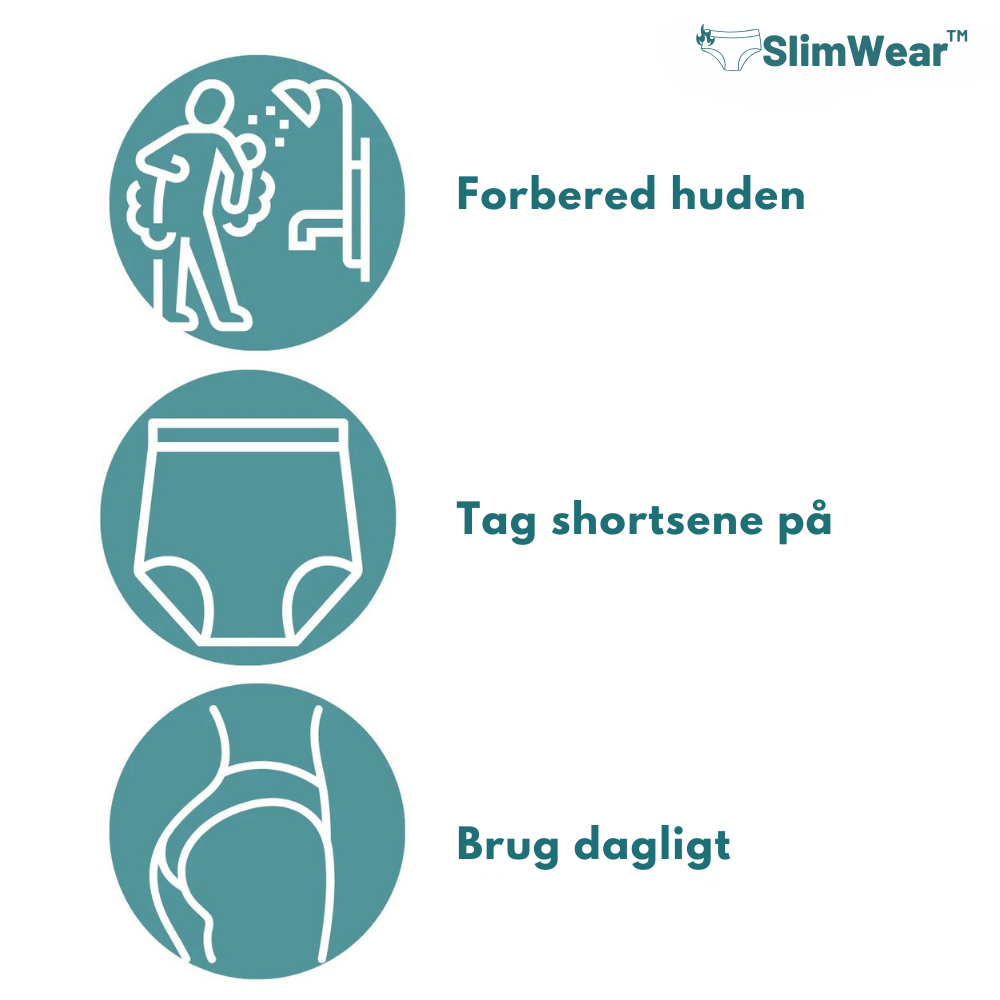 2. Tag shortsene på: Træk SlimWear™ op over de områder, du vil målrette, såsom talje, hofter eller lår.