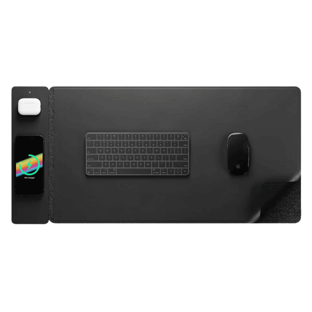 Sig farvel til sammenfiltrede ledninger og fejlplacerede noter. Den vendbare SmartPad™ kombinerer et integreret trådløst opladningspanel med et skjult rum til dokumenter og hjælper dig med at holde dit arbejdsområde pænt og effektivt.