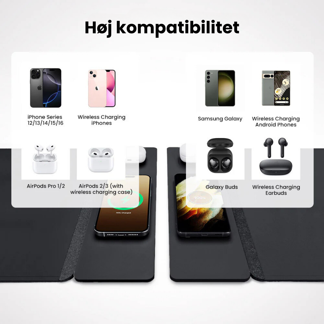 - Hurtig og effektiv: Oplad dine enheder dobbelt så hurtigt med det Qi-certificerede panel.
