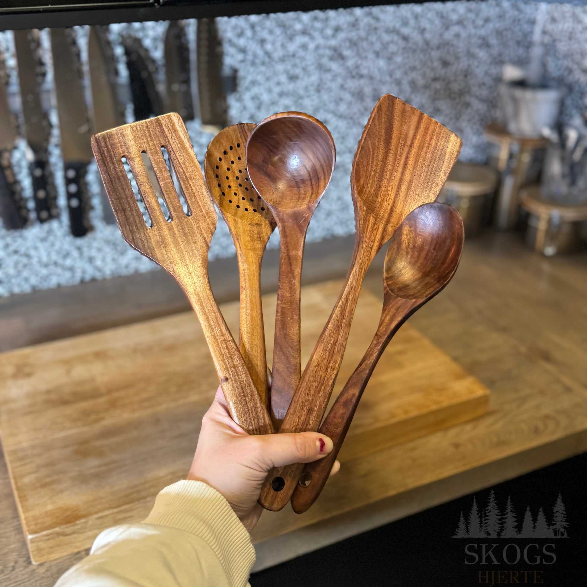 TeakNatur Redskaber™ er behandlet med naturlig olivenolie, helt uden skadelige kemikalier. Træets naturlige olier gør redskaberne vandafvisende og lette at rengøre. Bæredygtigt håndværk og tidløs elegance med træets varme toner bringer både kvalitet og skønhed til dit køkken.